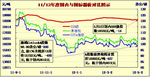 國內(nèi)外棉價對比圖表(5-2)