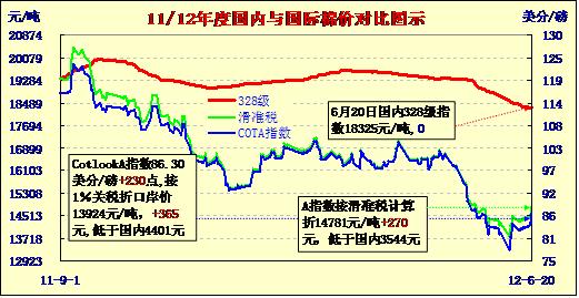 國內(nèi)外棉價(jià)對比圖表(6-20)