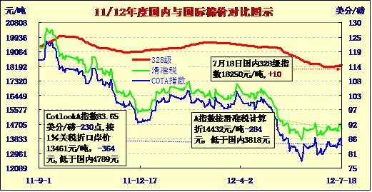 國內(nèi)外棉價(jià)對(duì)比圖表(7-18)