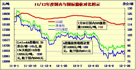 國內(nèi)外棉價(jià)對比圖表(7-26)