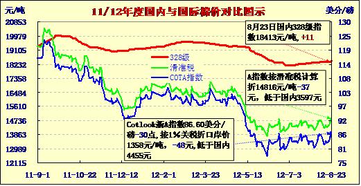 國內(nèi)外棉價對比圖表(8-23)