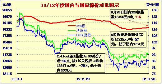 國(guó)內(nèi)外棉價(jià)對(duì)比圖表(8-28)