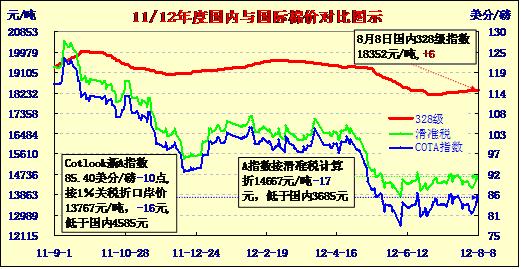 國(guó)內(nèi)外棉價(jià)對(duì)比圖表(8-8)