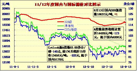 國(guó)內(nèi)外棉價(jià)對(duì)比圖表(9-13)