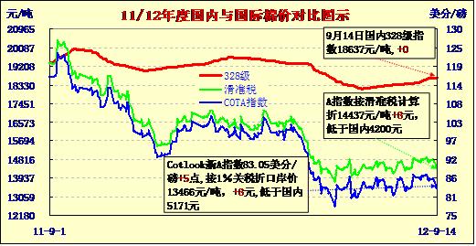 國(guó)內(nèi)外棉價(jià)對(duì)比圖表(9-14)