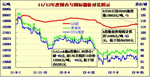 國內(nèi)外棉價(jià)對比圖表(9-25)