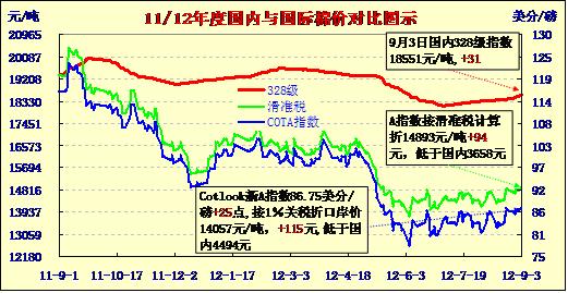 國內(nèi)外棉價對比圖表(9-3)