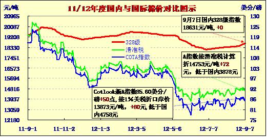 國(guó)內(nèi)外棉價(jià)對(duì)比圖表(9-7)