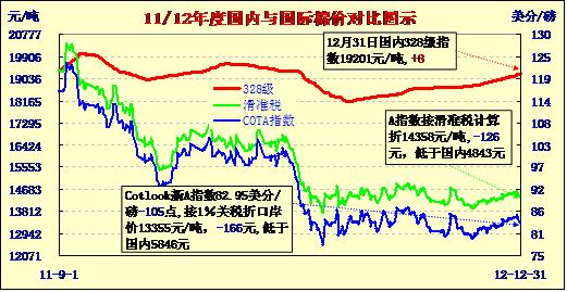 國內(nèi)外棉價(jià)對比圖表(12-31)