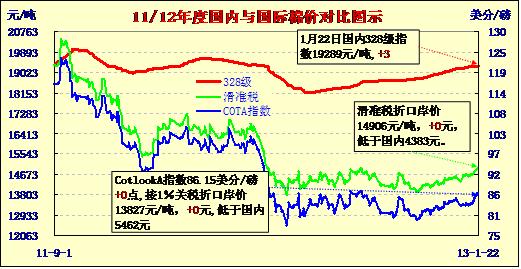國內(nèi)外棉價對比圖表(13-1-22)