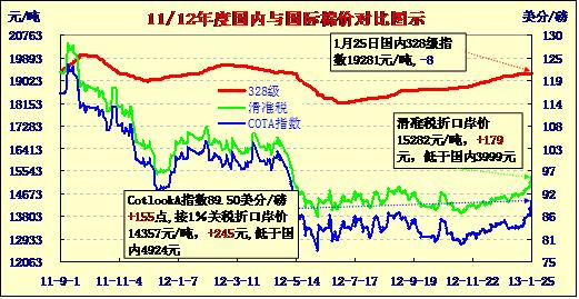 國內(nèi)外棉價對比圖表(13-1-25)