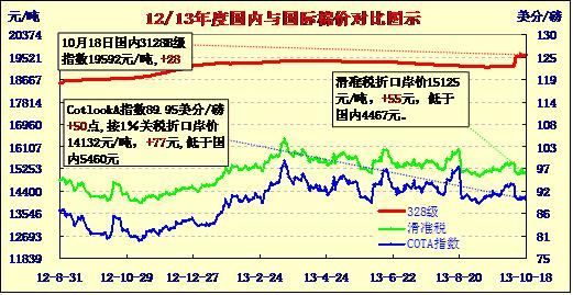 國內(nèi)外棉價(jià)對比圖表(10-18)