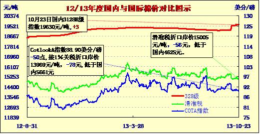 國內(nèi)外棉價(jià)對比圖表(10-23)