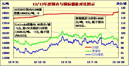 國(guó)內(nèi)外棉價(jià)對(duì)比圖表(10-29)