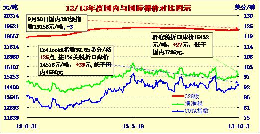 國(guó)內(nèi)外棉價(jià)對(duì)比圖表(10-03)