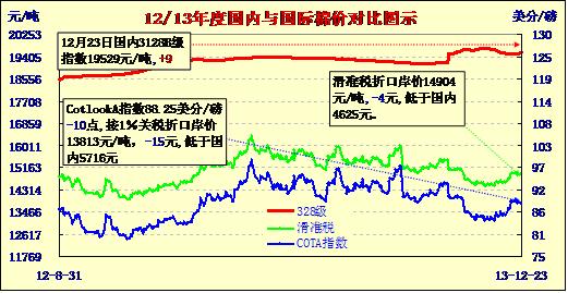 錦橋紡織網(wǎng)—資訊頻道> 棉花信息> cotlook>正文 國內(nèi)外棉價對比圖表(12-23)