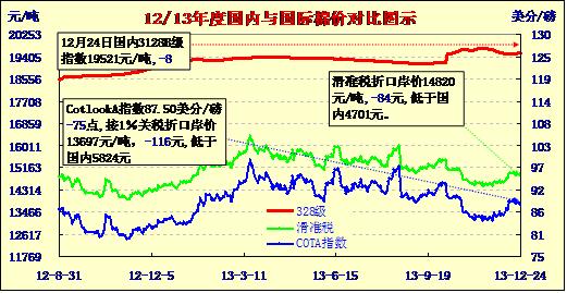 國(guó)內(nèi)外棉價(jià)對(duì)比圖表(12-24)