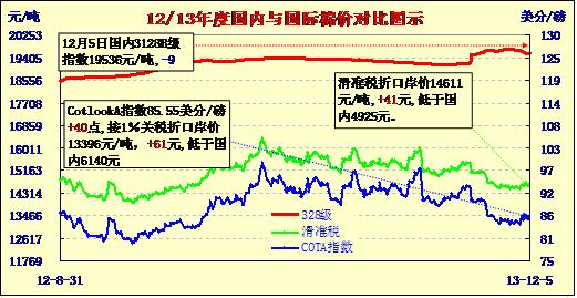 國(guó)內(nèi)外棉價(jià)對(duì)比圖表(12-05)
