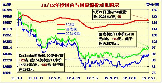 國內(nèi)外棉價對比圖表(13-2-21)