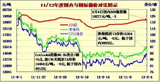 國(guó)內(nèi)外棉價(jià)對(duì)比圖表(13-2-4)