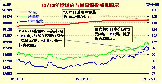 國(guó)內(nèi)外棉價(jià)對(duì)比圖表(13-3-21)