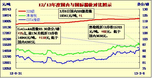 國內(nèi)外棉價(jià)對比圖表(13-3-6)