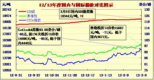 國內(nèi)外棉價對比圖表(13-3-8)