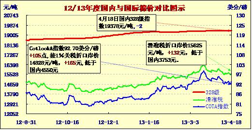 國(guó)內(nèi)外棉價(jià)對(duì)比圖表(13-4-18)