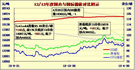 國內(nèi)外棉價對比圖表(13-4-30)
