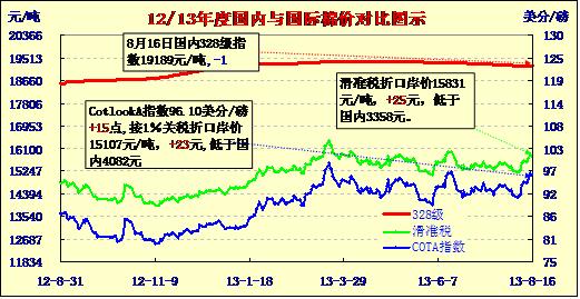 國內(nèi)外棉價(jià)對比圖表(13-8-16)