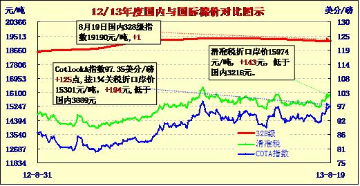 國(guó)內(nèi)外棉價(jià)對(duì)比圖表(13-8-19)