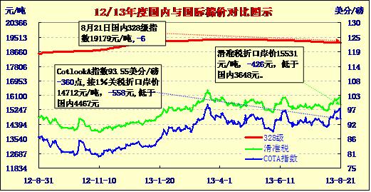 國(guó)內(nèi)外棉價(jià)對(duì)比圖表(13-8-21)