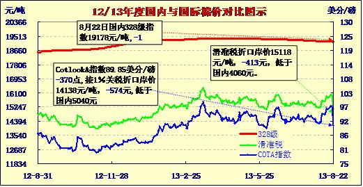 國內(nèi)外棉價(jià)對比圖表(13-8-22)