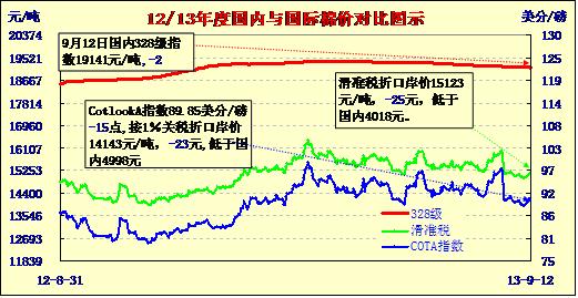 錦橋紡織網(wǎng)—資訊頻道> 棉花信息> cotlook>正文 國內(nèi)外棉價對比圖表(09-12)