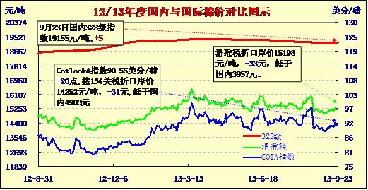 國(guó)內(nèi)外棉價(jià)對(duì)比圖表(09-23)