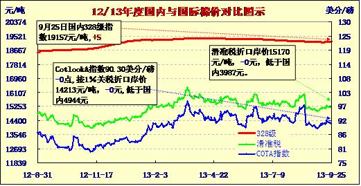 國(guó)內(nèi)外棉價(jià)對(duì)比圖表(09-25)