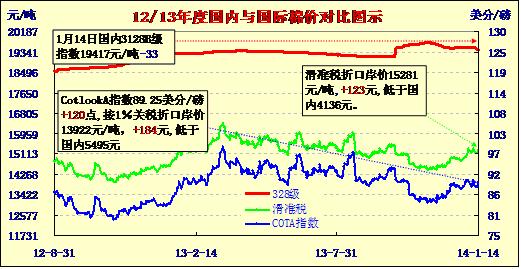 錦橋紡織網(wǎng)—資訊頻道> 棉花信息> cotlook>正文 國內(nèi)外棉價對比圖表(01-14)