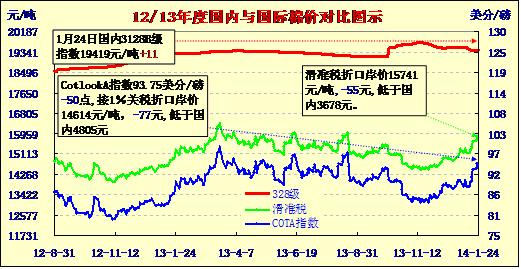 國內(nèi)外棉價對比圖表(01-24)