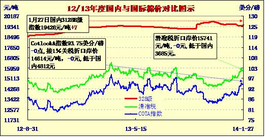 錦橋紡織網(wǎng)—資訊頻道> 棉花信息> cotlook>正文 國內(nèi)外棉價對比圖表(01-27)