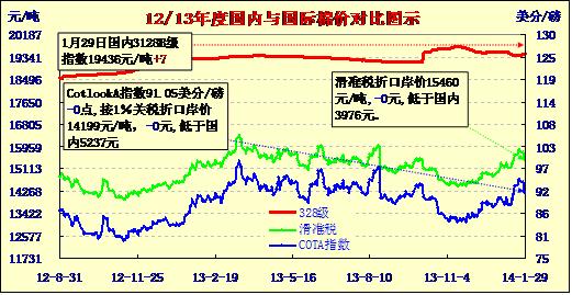 國(guó)內(nèi)外棉價(jià)對(duì)比圖表(01-29)