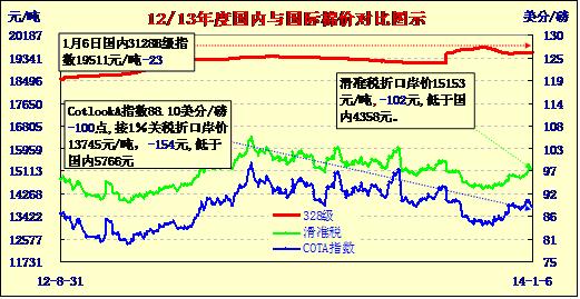 國內(nèi)外棉價(jià)對比圖表(01-06)