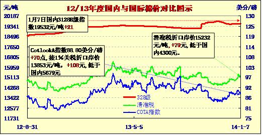 國內(nèi)外棉價對比圖表(01-07)