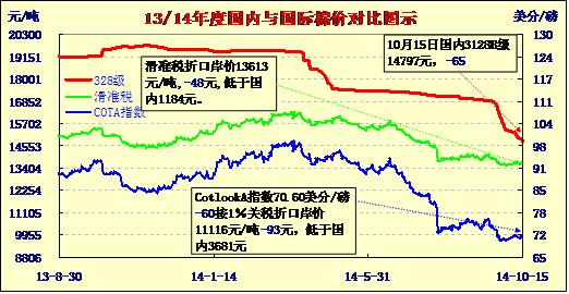 國(guó)內(nèi)外棉價(jià)對(duì)比圖表(10-15)