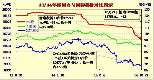 國(guó)內(nèi)外棉價(jià)對(duì)比圖表(10-21)