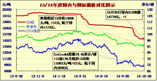 國內(nèi)外棉價(jià)對比圖表(10-30)