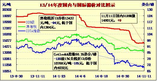國(guó)內(nèi)外棉價(jià)對(duì)比圖表(11-11)