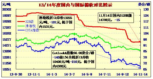 國內(nèi)外棉價對比圖表——外棉接近萬元(11-14)