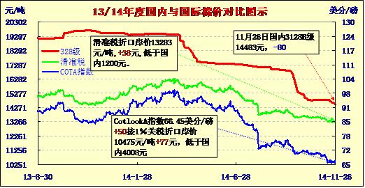 國內(nèi)外棉價(jià)對比圖表(11-26)