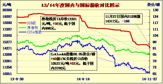 國(guó)內(nèi)外棉價(jià)對(duì)比圖表——一漲一跌差價(jià)破千(11-27)
