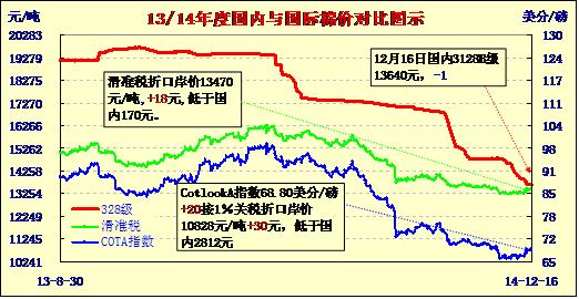 國內(nèi)外棉價對比圖表——滑準(zhǔn)價差百余元(12-16)